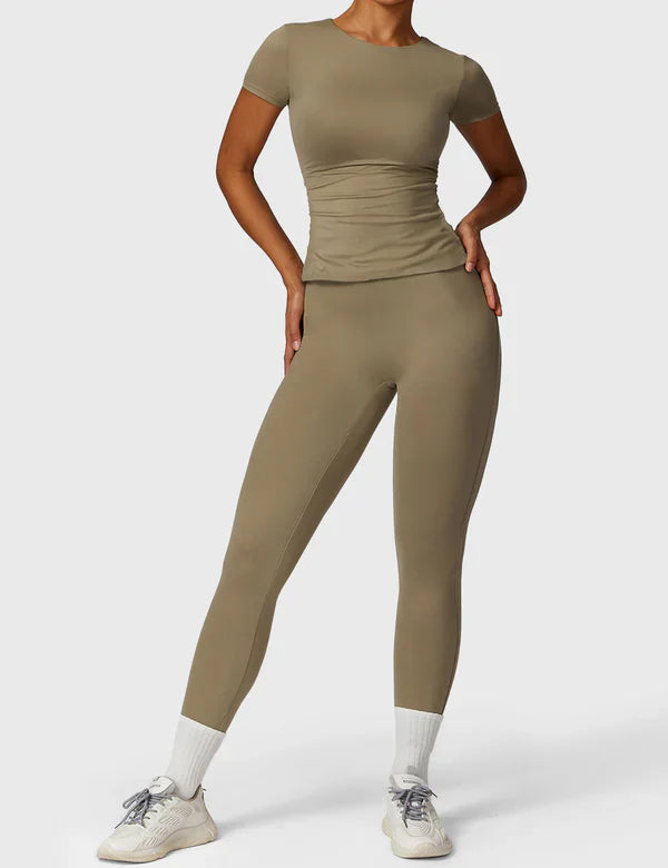 Das LYRA Kurzarm T-Shirt vereint Komfort mit einem zeitlosen Design. Dank des weichen, atmungsaktiven Materials fühlt es sich angenehm auf der Haut an und bietet maximale Bewegungsfreiheit. Perfekt für Workouts, Yoga oder als lässiges Freizeitshirt.