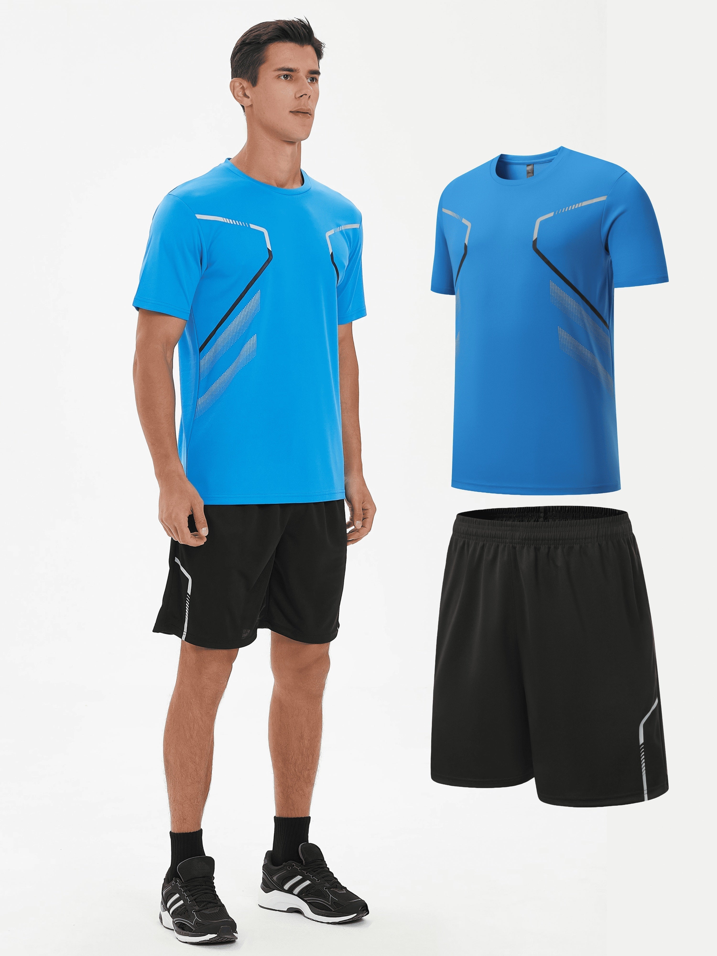 ÉMILE – Herren Sport-Set mit Streifen-Design für Sommer & Training - Blau - m ist auf Lager und wird versandt, sobald es wieder verfügbar ist